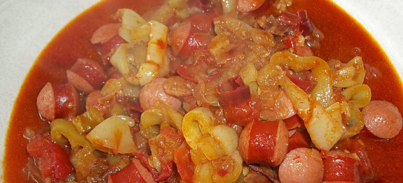 Lecsóra vágytam, a feleségem tegnap ezt főzött, az orromban éreztem az illatát. Mivel nem volt kolbász a hűtőben, megalkudtam, és frankfurti virslivel készítettem el.