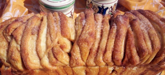 Megkenjük az olvasztott vajjal alaposan és megszórjuk bőven a szerecsendiós, fahéjas cukorral.