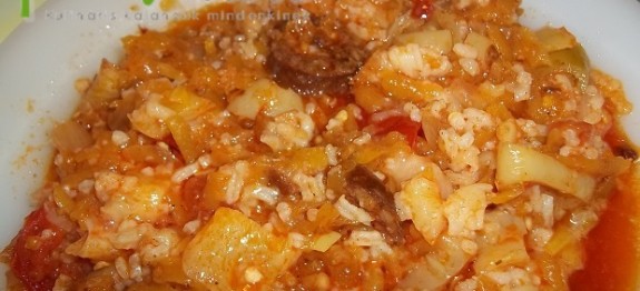 Tökös rizses lecsó füstölt kolbásszal és szalonnával