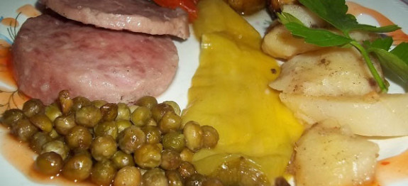 A csülöksonkát krumplival és zöldségekkel sütöttem egybe. Nagyon finom lett!